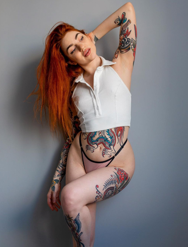 Anastasia Kazakova — талантливая модель с татуировками, известная своим ярким рыжим волосом и стремлением к развитию в своей сфере. Девушка выделяется среди других моделей благодаря своей оригинальности и стильному внешнему виду. Ее рыжие волосы создают уникальный образ, который визуально привлекает внимание.Она упорно работает над развитием своей карьеры в модельном бизнесе, стремясь расширять свои горизонты и добиваться успеха. Anastasia принимает участие в различных фотосессиях, показывая свою многогранность и способность адаптироваться к разным стилям и образам.